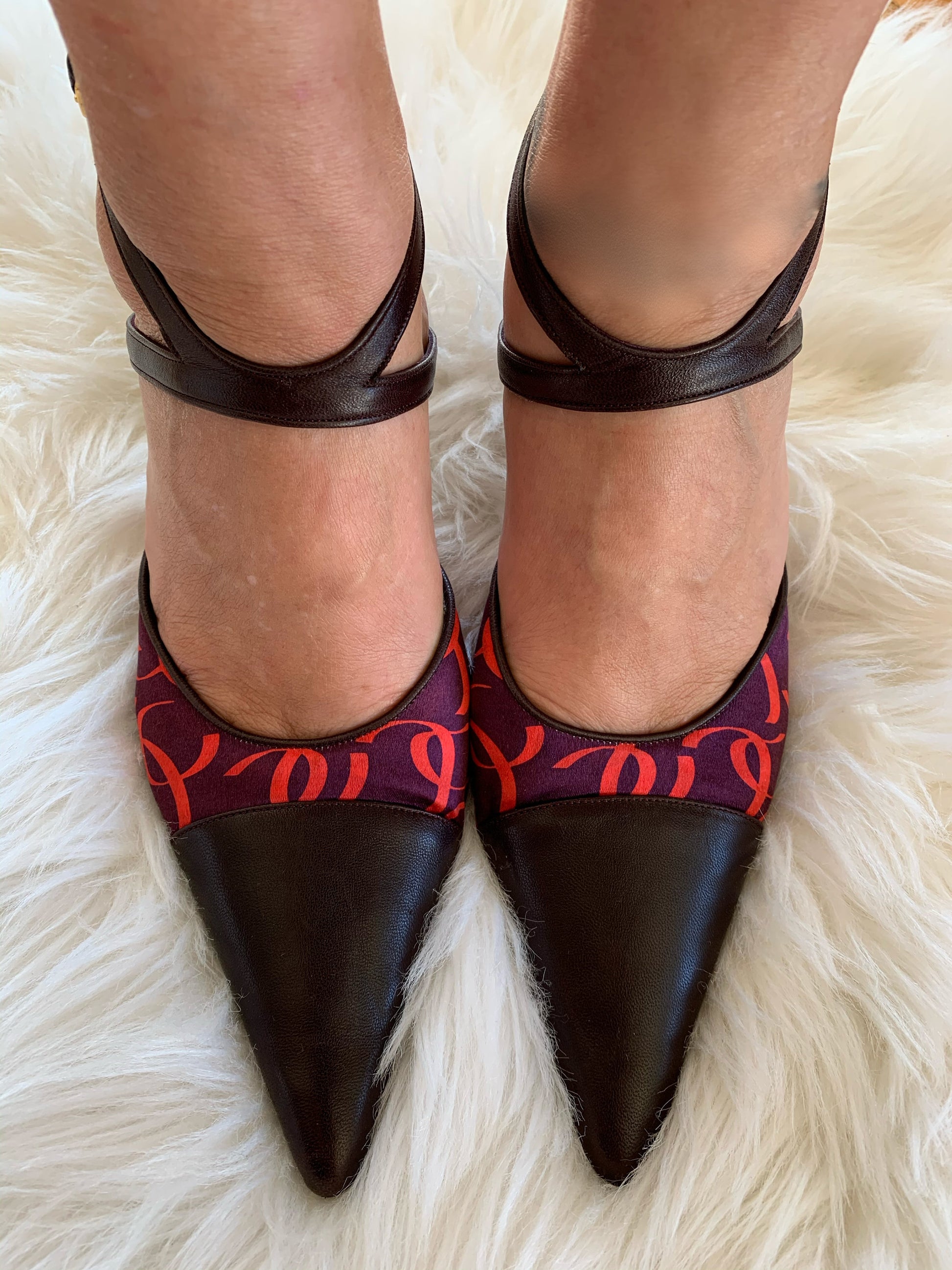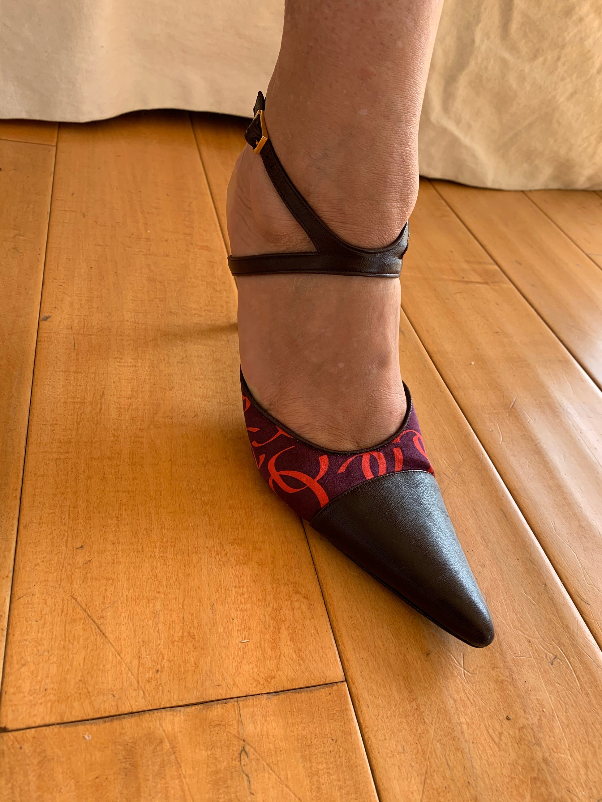These shoes are in VERY good vintage condition. The pink CC monogram satin uppers really pop and the chic maroon brown leather is stunning!