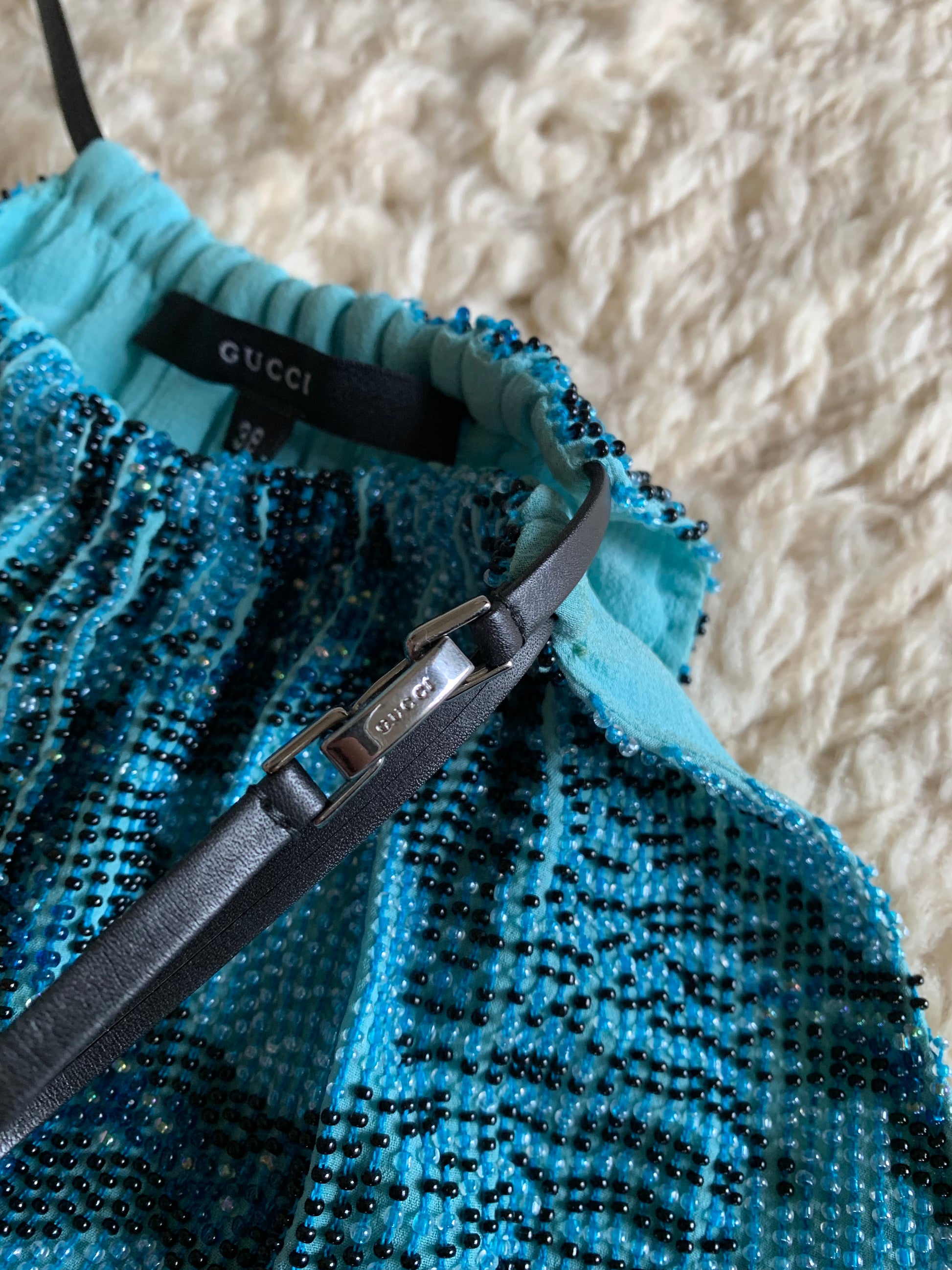 Tom Ford Era Vintage GUCCI Silk Turquoise Snakeskin Beaded Python Print Top. Debuted on the S/S 00 Gucci Collection